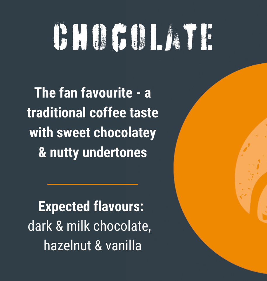 Ideal for newcomers to specialty coffee, Chocolate offers a familiar taste profile with an elevated touch of quality you didn't know you were missing out on.